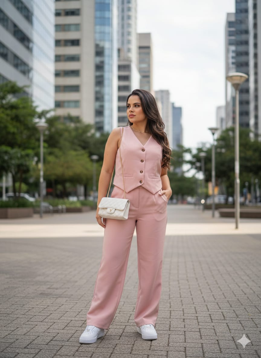 Elegância e sofisticação em cada detalhe. Nosso conjunto de alfaiataria é a escolha perfeita para quem busca um visual moderno e refinado, ideal para o ambiente de trabalho ou eventos especiais. Confeccionado com tecido de alta qualidade, oferece caimento impecável e conforto durante todo o dia. Transforme seu look com estilo e personalidade.