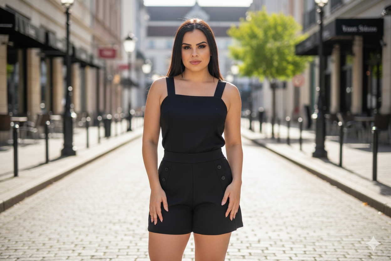 Um look versátil que pode ser usado tanto em produções casuais quanto em ocasiões que pedem um toque refinado. Combine com sandália de salto, rasteira ou tênis para diferentes estilos.